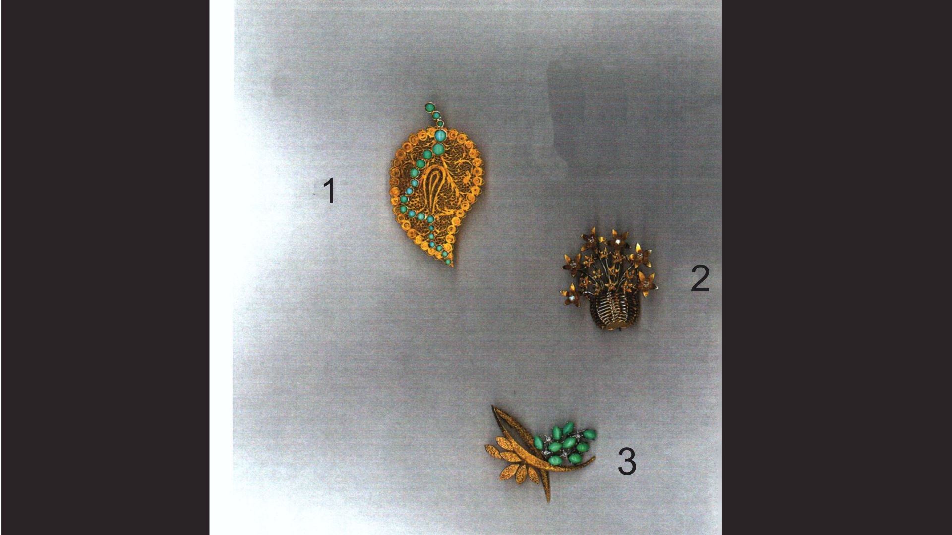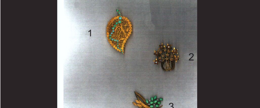 Nr. 2 - 585er Goldbrosche mit Brillanten und Türkisen